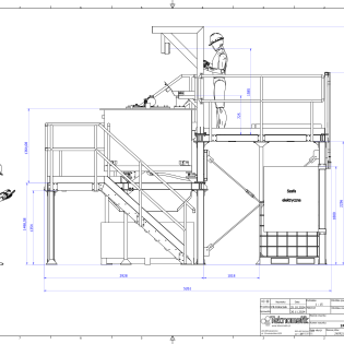 Konstrukcja wykonana z profili stalowych z podestem górnym służącym do obsługi zbiorników oraz podestem dolnym umożliwiającym swobodny dostęp serwisowy do każdego miejsca maszyny. Schody dostępowe oraz podesty zaprojektowane tak, aby zapewnić operatorom maksymalną wygodę pracy oraz swobodę ruchów.